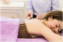 | 頭皮から肩甲骨までたっぷりマッサージ。洗浄、保湿、リラクゼーションまでをトータルケアします。 |